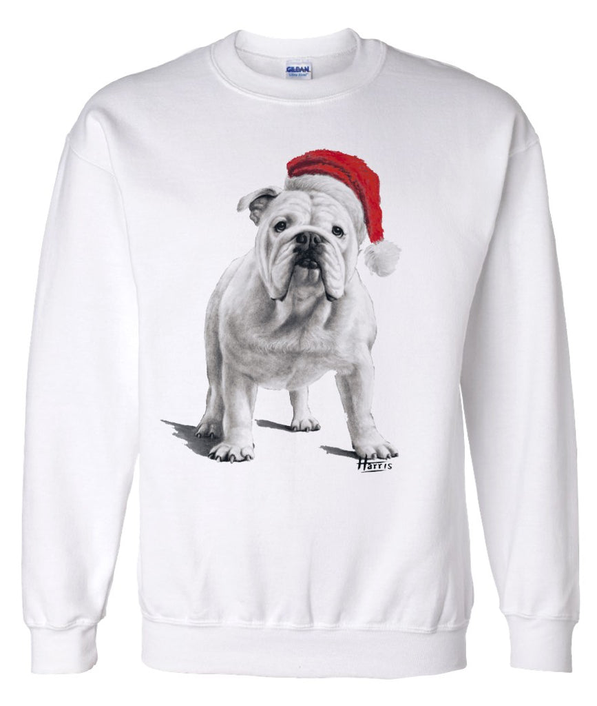 This is the classic Greg Harris, a local Athens artist, Santa Bulldog art on a cozy 50% Cotton, 50% Polyester Sweatshirt. This exclusive design from The Red Zone is perfect for your holiday fun!